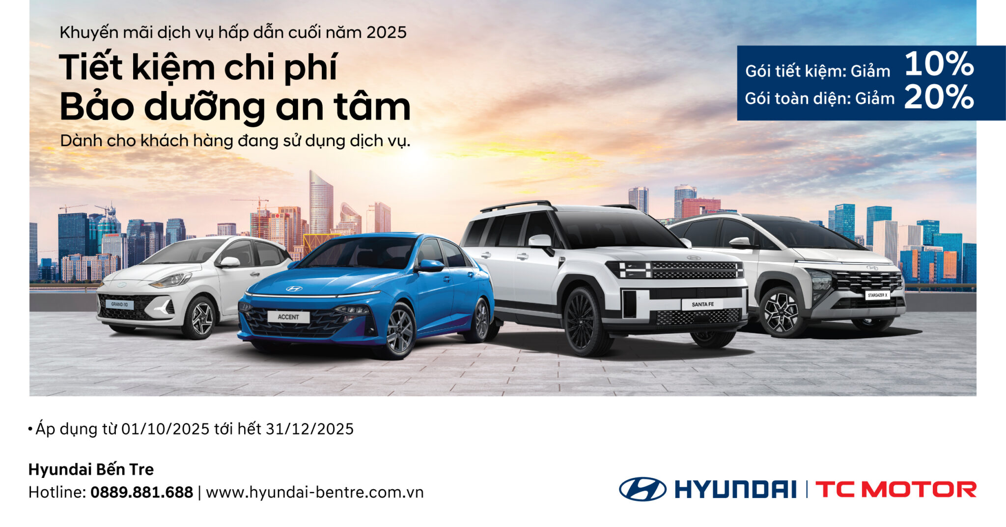 Chọn Hyundai – Nhận trọn ưu đãi & an tâm dài lâu Tháng 10 này, hành trình cùng Hyundai Bến Tre trở nên trọn vẹn hơn bao giờ hết. Khi...
